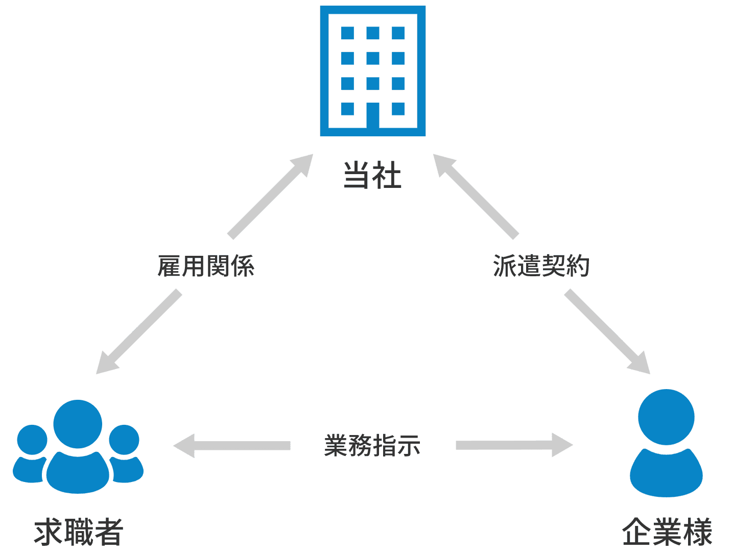当社が雇用主となり、企業様にスタッフ(求職者様)を派遣する形態です。